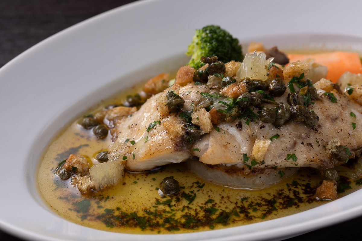 レンコンときのこのムースを詰めたイトヨリのルーロ デュグレレ風ソース