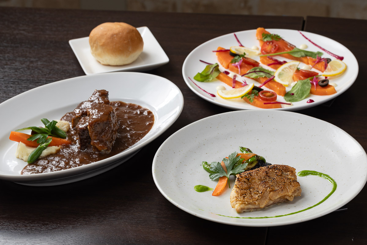 前菜の中から1品と、魚料理1品・肉料理1品をお選びください。